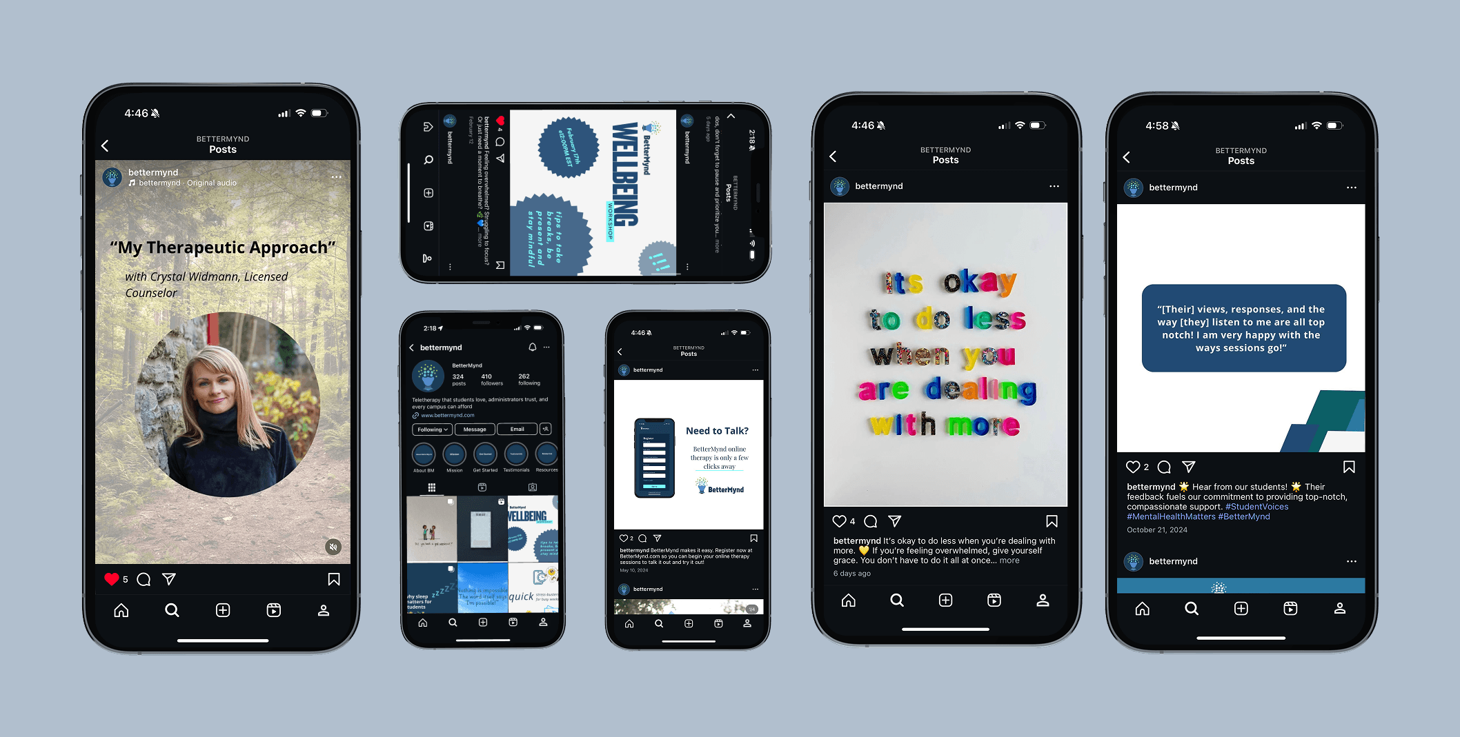 Beyond the toolkit system, I developed and executed BetterMynd's ongoing social media presence, testing different content formats to understand what truly resonates with college students navigating mental health challenges.