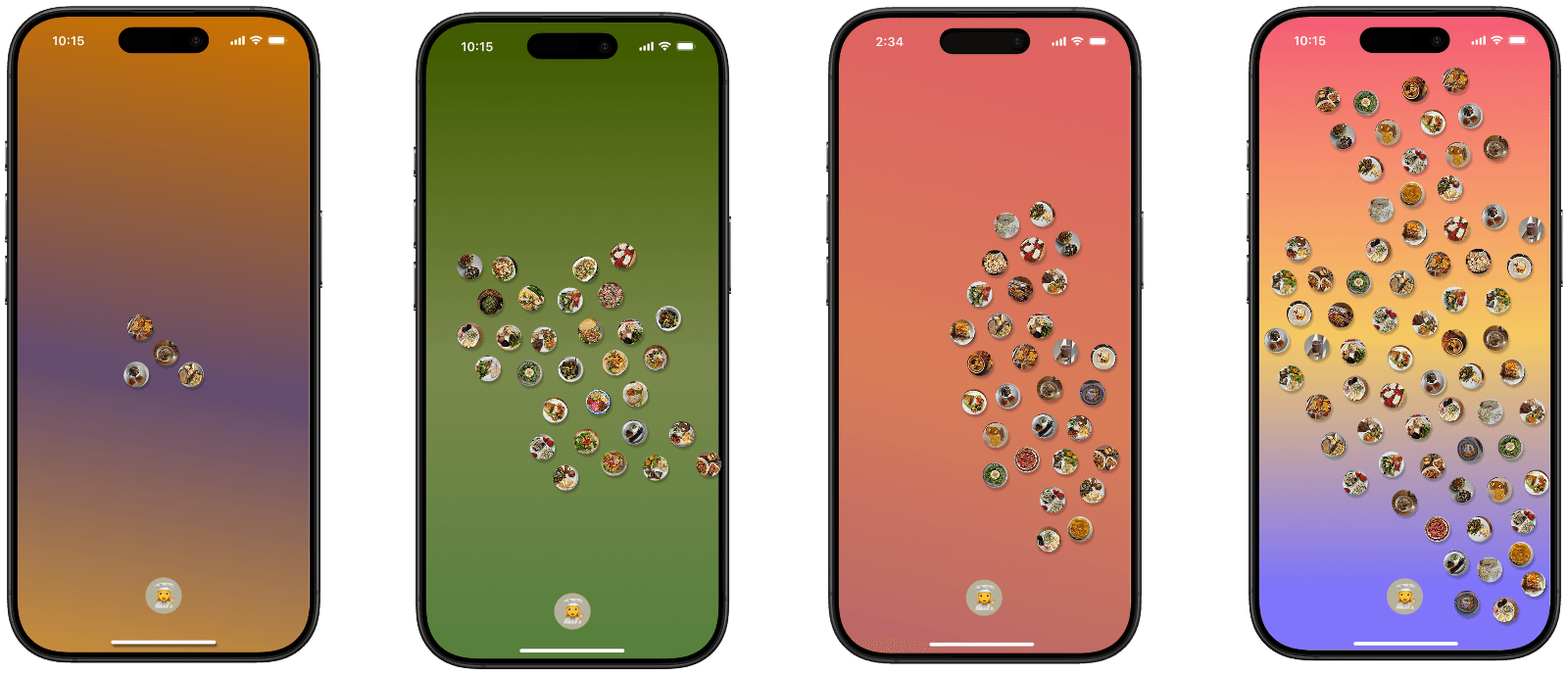 Your aquarium background isn't static—it's alive. Dish's Mood Food feature creates an interactive gradient that ebbs and flows based on the moods you associate with your meals. Colors shift subtly, creating a living visual experience that reflects how food makes you feel.